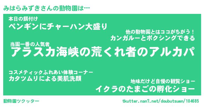 | 2回繰り返すあだ名 | 『みはみは』『みみはは』『うろうろ』 |