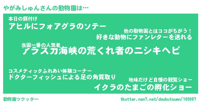 | 2回繰り返すあだ名 | 『やがやが』『ややがが』『なあなあ』 |