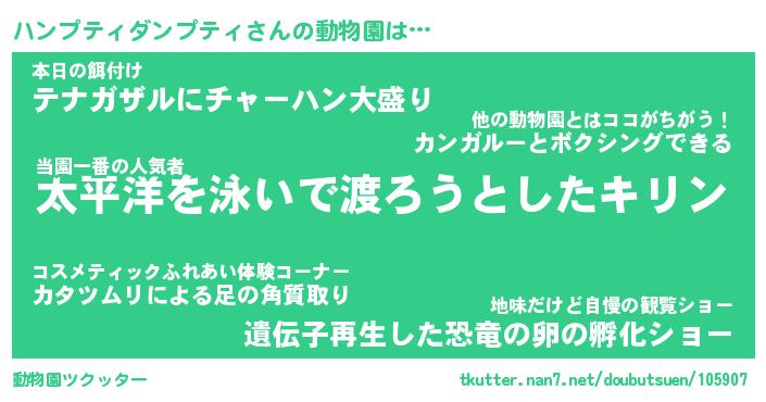 | 病院 | ハンプティダンプティ院長の病院名『医療法人ポカーン病院』 |