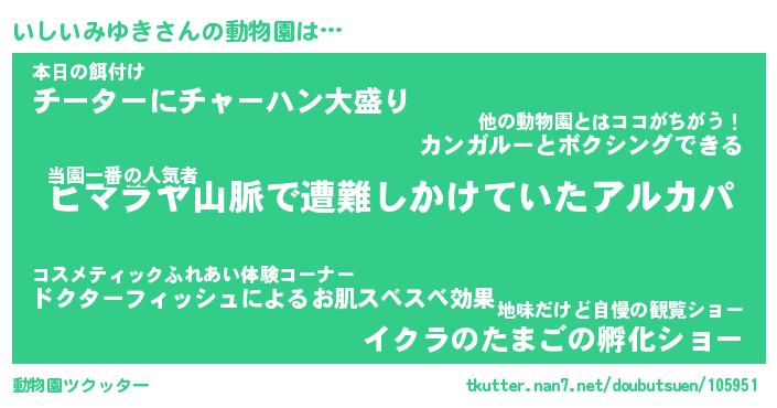 | 2回繰り返すあだ名 | 『いしいし』『いいしし』『ぬれぬれ』 |