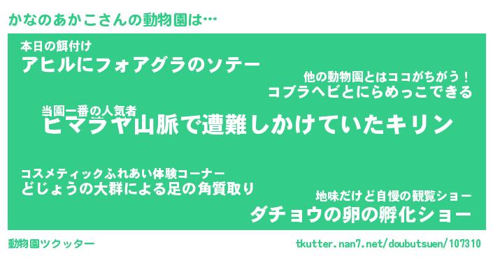 | 2回繰り返すあだ名 | 『かなかな』『かかなな』『うろうろ』 |