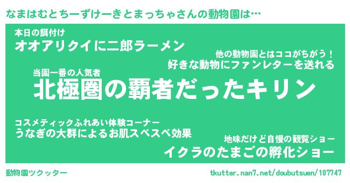 | 2回繰り返すあだ名 | 『なまなま』『ななまま』『うずうず』 |