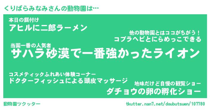 | 胡散臭い通販商品みたいなあだ名 | 『必ず成功するブレスレット…その名も「くりばらみなみ」』 |