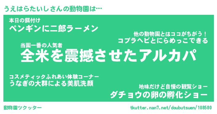 | ピコ太郎風あだ名 | 『ウコ六郎』『ピウ三郎』『ウエ史郎』 |