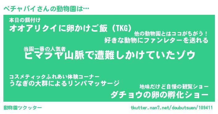 | 2回繰り返すあだ名 | 『ペチペチ』『ペペチチ』『うろうろ』 |