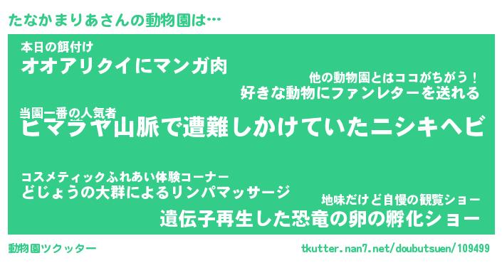 | 2回繰り返すあだ名 | 『たなたな』『たたなな』『ぼそぼそ』 |