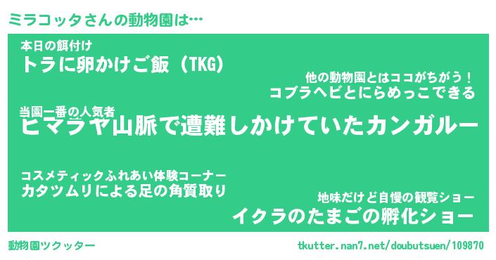| ツイッター | ミラコッタさんのツイッターID『dendenmushi_man』 |