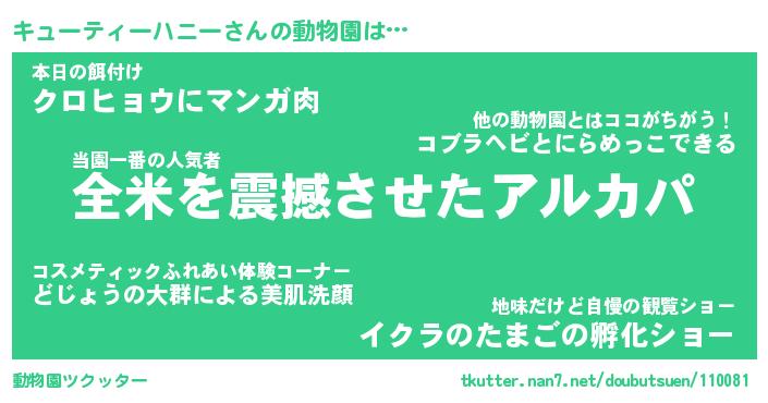 | 2回繰り返すあだ名 | 『キュキュ』『キキュュ』『うろうろ』 |