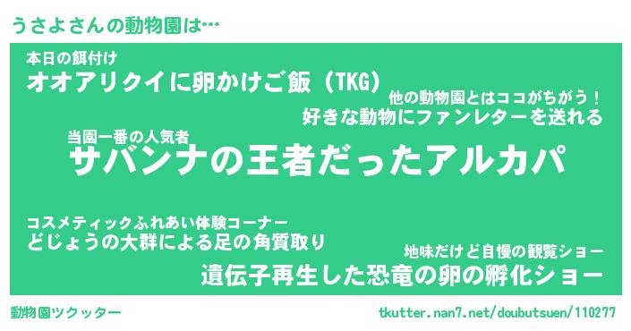 | 2回繰り返すあだ名 | 『うさうさ』『ううささ』『ぬらぬら』 |