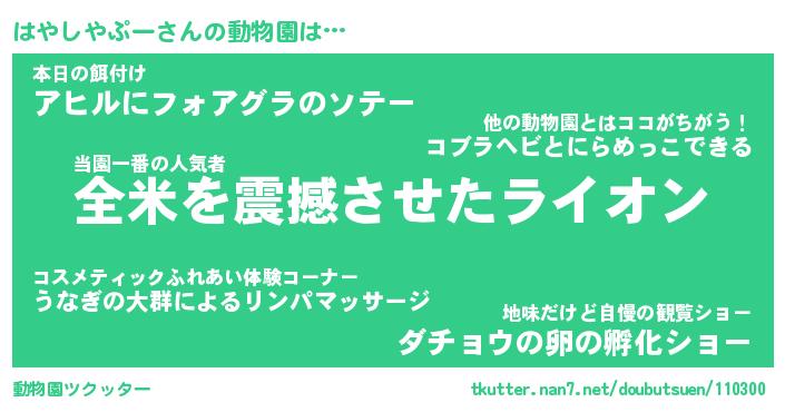 | ツイッター | はやしやぷーさんのツイッターID『namakemono_star』 |