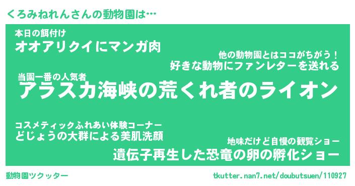 | 2回繰り返すあだ名 | 『くろくろ』『くくろろ』『にたにた』 |