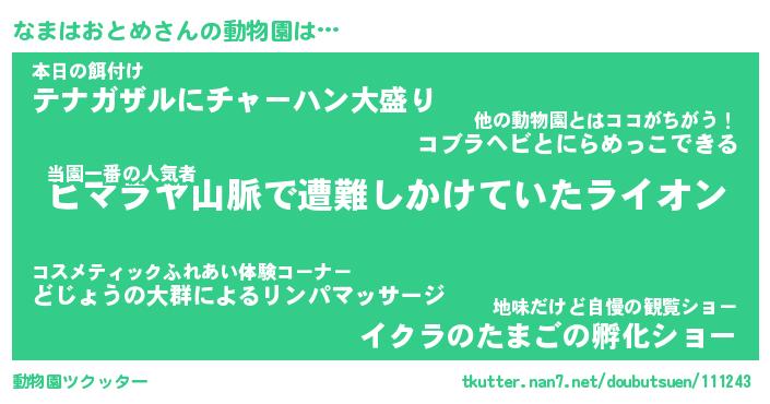 | 2回繰り返すあだ名 | 『なまなま』『ななまま』『うずうず』 |