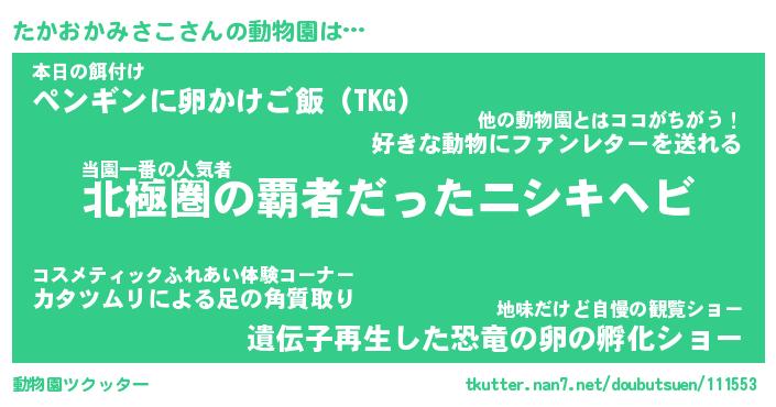 | 2回繰り返すあだ名 | 『たかたか』『たたかか』『ぬれぬれ』 |
