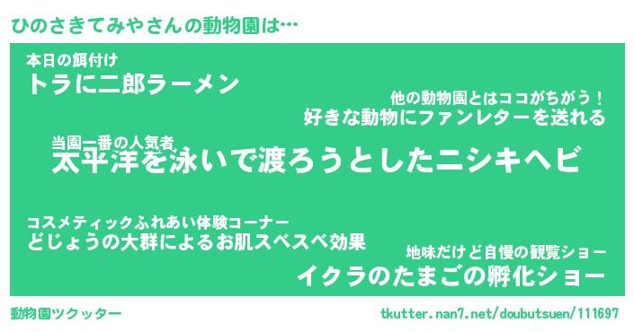 | 2回繰り返すあだ名 | 『ひのひの』『ひひのの』『ぬれぬれ』 |
