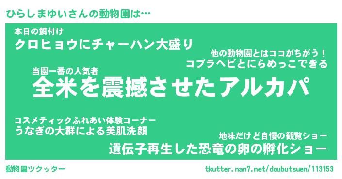 | 伝説のあだ名 | 『封印されしスナイパーひらしまゆい』 |