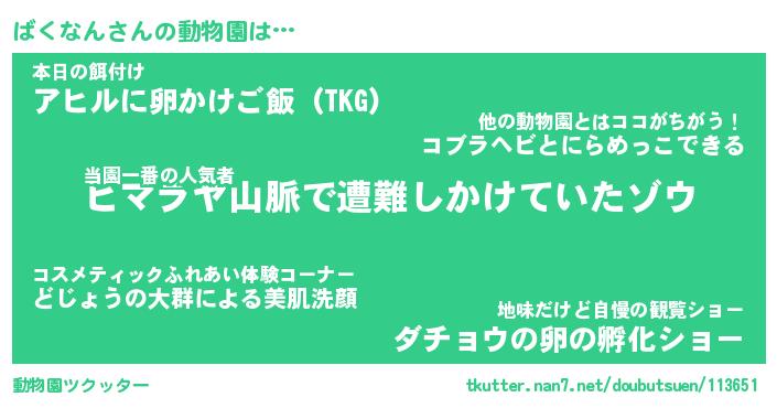 | 2回繰り返すあだ名 | 『ばくばく』『ばばくく』『げろげろ』 |