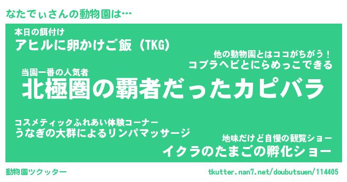 | 2回繰り返すあだ名 | 『なたなた』『ななたた』『いらいら』 |