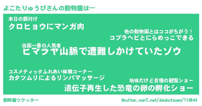 | 2回繰り返すあだ名 | 『よこよこ』『よよここ』『ぬるぬる』 |