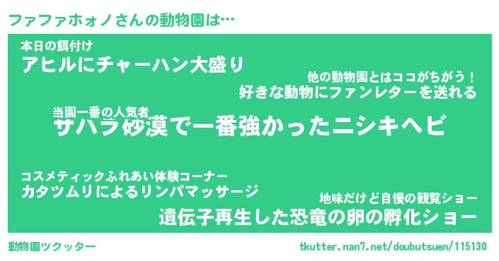 | 2回繰り返すあだ名 | 『ファファ』『フファァ』『ぬれぬれ』 |
