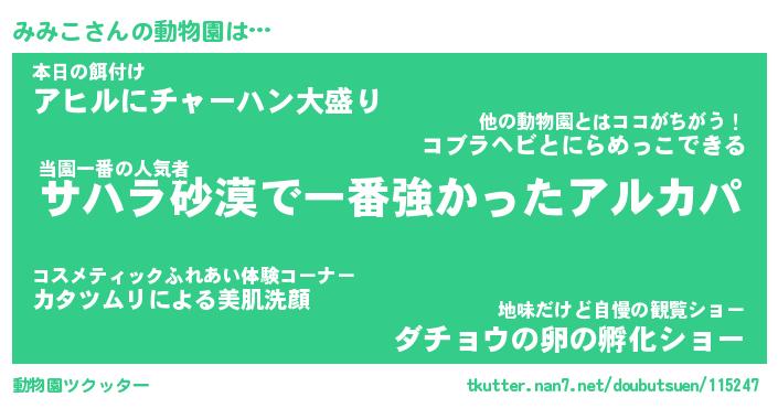 | 2回繰り返すあだ名 | 『みみみみ』『みみみみ』『ねばねば』 |