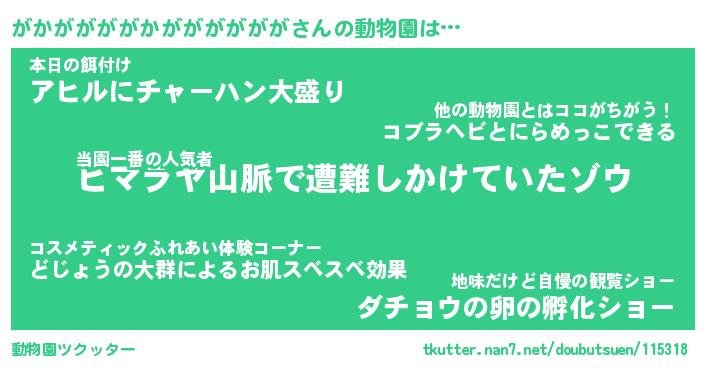 | 2回繰り返すあだ名 | 『がかがか』『ががかか』『ぎとぎと』 |