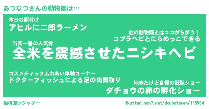 | 2回繰り返すあだ名 | 『あつあつ』『ああつつ』『くだくだ』 |