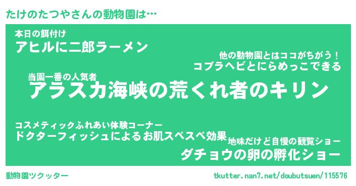 | 2回繰り返すあだ名 | 『たけたけ』『たたけけ』『ぬれぬれ』 |