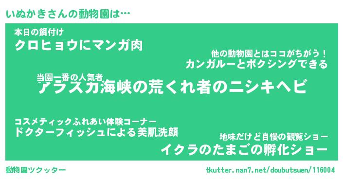 | 2回繰り返すあだ名 | 『いぬいぬ』『いいぬぬ』『ぬれぬれ』 |