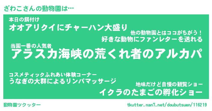 | 2回繰り返すあだ名 | 『ざわざわ』『ざざわわ』『あんあん』 |