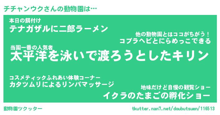 | 2回繰り返すあだ名 | 『チチチチ』『チチチチ』『いらいら』 |