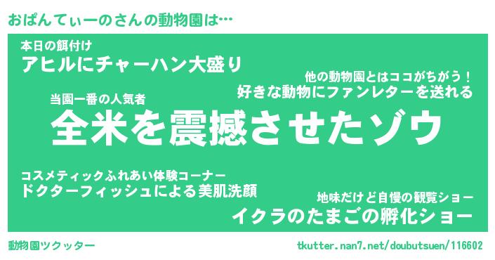 | ツイッター | おぱんてぃーのさんのツイッターID『namakemono_idle』 |