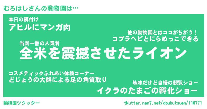 | 2回繰り返すあだ名 | 『むろむろ』『むむろろ』『あんあん』 |