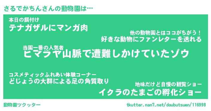 | ツイッター | さるでかちんさんのツイッターID『dendenmushi_idle』 |