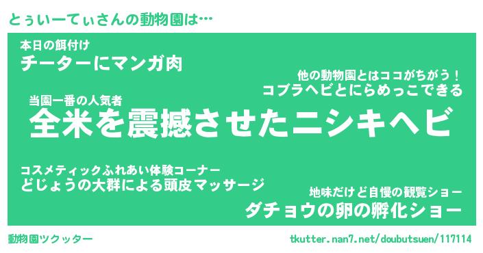 | 2回繰り返すあだ名 | 『とぅとぅ』『ととぅぅ』『にたにた』 |