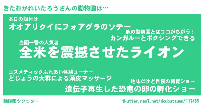 | ツイッター | きたおかれいたろうさんのツイッターID『namakemono_man』 |