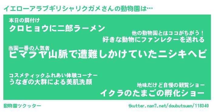 | 料理風あだ名 | 『節約★イエローアラブギリシャリクガメと油揚げの玉子丼』 |