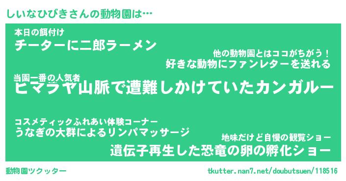 | 2回繰り返すあだ名 | 『しいしい』『ししいい』『うろうろ』 |