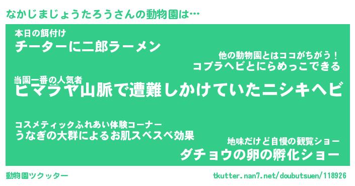 | ツイッター | なかじまじょうたろうさんのツイッターID『dendenmushi_idle』 |