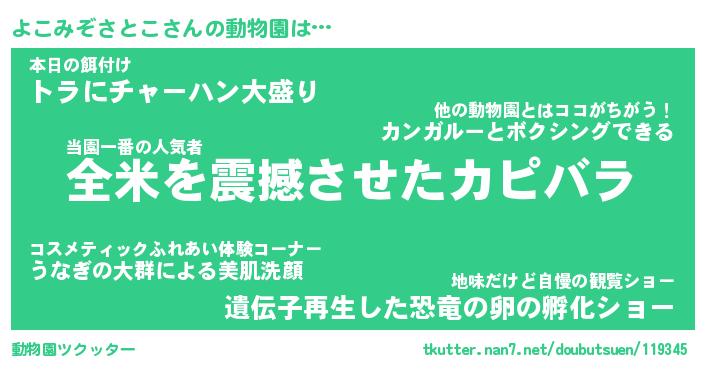 | 2回繰り返すあだ名 | 『よこよこ』『よよここ』『ぬれぬれ』 |