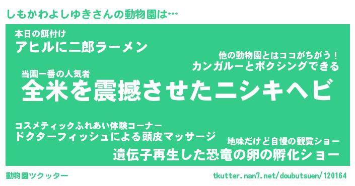 | 胡散臭い通販商品みたいなあだ名 | 『億万長者になれるブレスレット…その名も「しもかわよしゆき」』 |