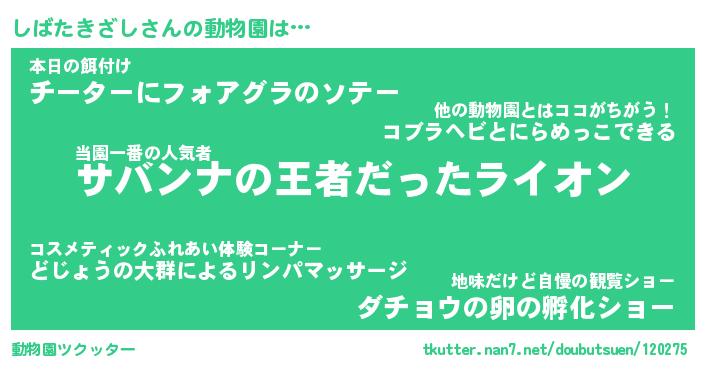 | 2回繰り返すあだ名 | 『しばしば』『ししばば』『うずうず』 |