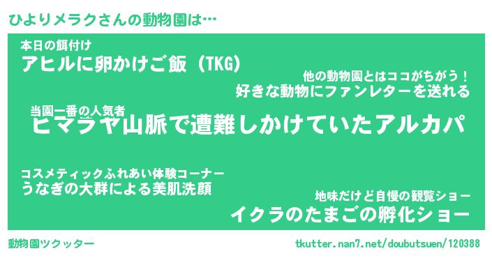 | 料理風あだ名 | 『節約★ひよりメラクと油揚げの玉子丼』 |