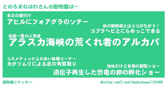 | 2回繰り返すあだ名 | 『とのとの』『ととのの』『ぬれぬれ』 |