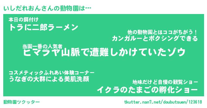 | 2回繰り返すあだ名 | 『いしいし』『いいしし』『うろうろ』 |