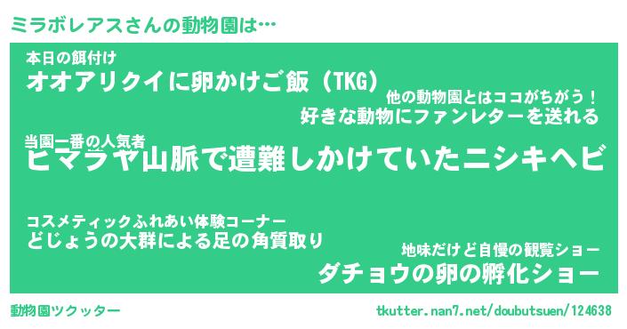 | ツイッター | ミラボレアスさんのツイッターID『namakemono_idle』 |