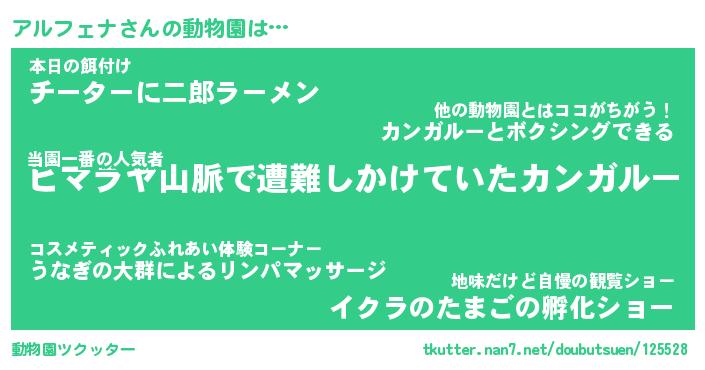 | 肩書あだ名 | 『アルフェナ社長』『アルフェナ総理大臣』 |