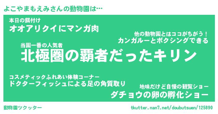 | 2回繰り返すあだ名 | 『よこよこ』『よよここ』『げほげほ』 |