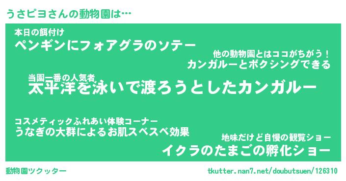 | 欧米人風あだ名 | 『マイケルうさピヨ』『ウサインうさピヨ』 |