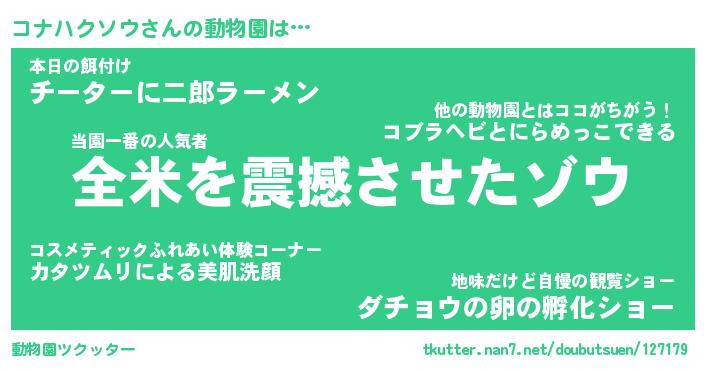 | 2回繰り返すあだ名 | 『コナコナ』『ココナナ』『いじいじ』 |
