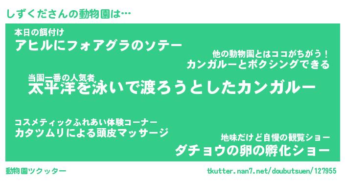 | 2回繰り返すあだ名 | 『しずしず』『ししずず』『うろうろ』 |